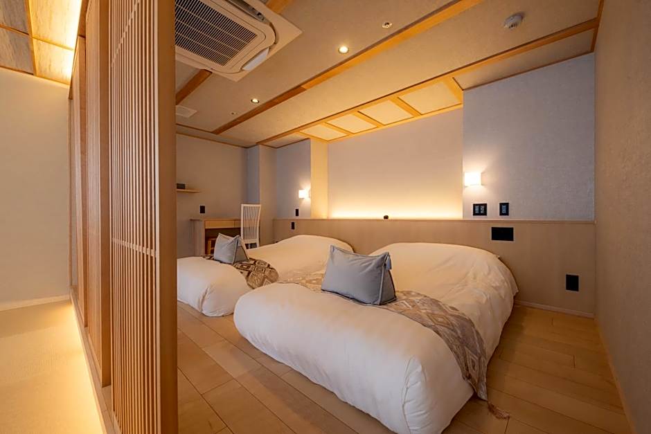 Offering free toiletries, this twin room includes a private bathroom with a walk-in shower, a bidet and a hairdryer. The twin room offers tatami, an electric kettle, yukata, a flat-screen TV with streaming services, as well as a quiet street view. The unit offers 2 beds.